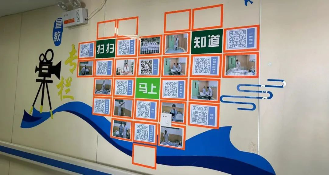 走進骨二科(創(chuàng)傷骨科、骨腫瘤),映入眼簾的就是獨具特色的健康宣教二維碼墻,這是科室優(yōu)質護理服務工作的一道靚麗的風景線,也是提升患者就醫(yī)體驗的重要舉措。從入院宣教到圍術期健康指導、術后康復鍛煉再到出院宣教……每一個場景設計、每一個動作要領都是骨二科(創(chuàng)傷骨科、骨腫瘤)醫(yī)護人員結合工作實際,本色出演,通過自學制作科普視頻,并上傳至網(wǎng)絡生成二維碼來供患者觀看。為方便患者操作,科室特意設計并制作宣傳文化墻,將二維碼放置在文化墻上,患者只要掃一掃即可找到自己需要獲取的健康知識。體現(xiàn)了健康教育實時性、專科性、個性化的特點,患者不僅從中學習健康知識,更提高遵醫(yī)行為的意識,提升了治療的依從性和滿意度。