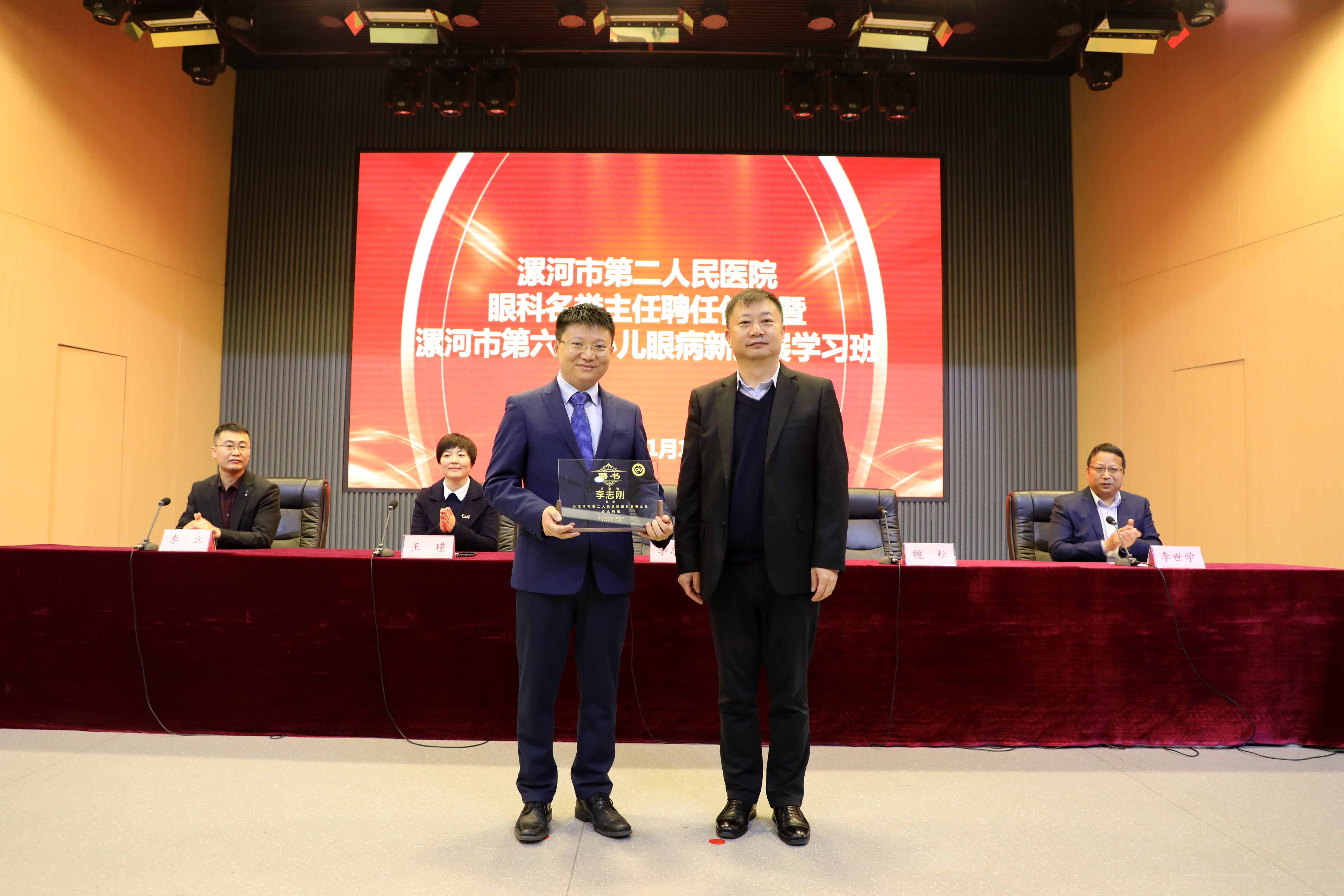11月12日上午,“漯河市第二人民醫(yī)院眼科名譽(yù)主任聘任儀式暨漯河市第六屆小兒眼病新進(jìn)展學(xué)習(xí)班”在12樓學(xué)術(shù)報(bào)告廳舉行。國內(nèi)知名小兒眼科專家、鄭州大學(xué)第一附屬醫(yī)院眼科中心(河南省眼科醫(yī)院)副主任李志剛教授、漯河市第二人民醫(yī)院黨委書記魏松、院長王瑾及全體班子成員、相關(guān)科室人員參加了聘任儀式。會議由工會主席李世學(xué)主持。