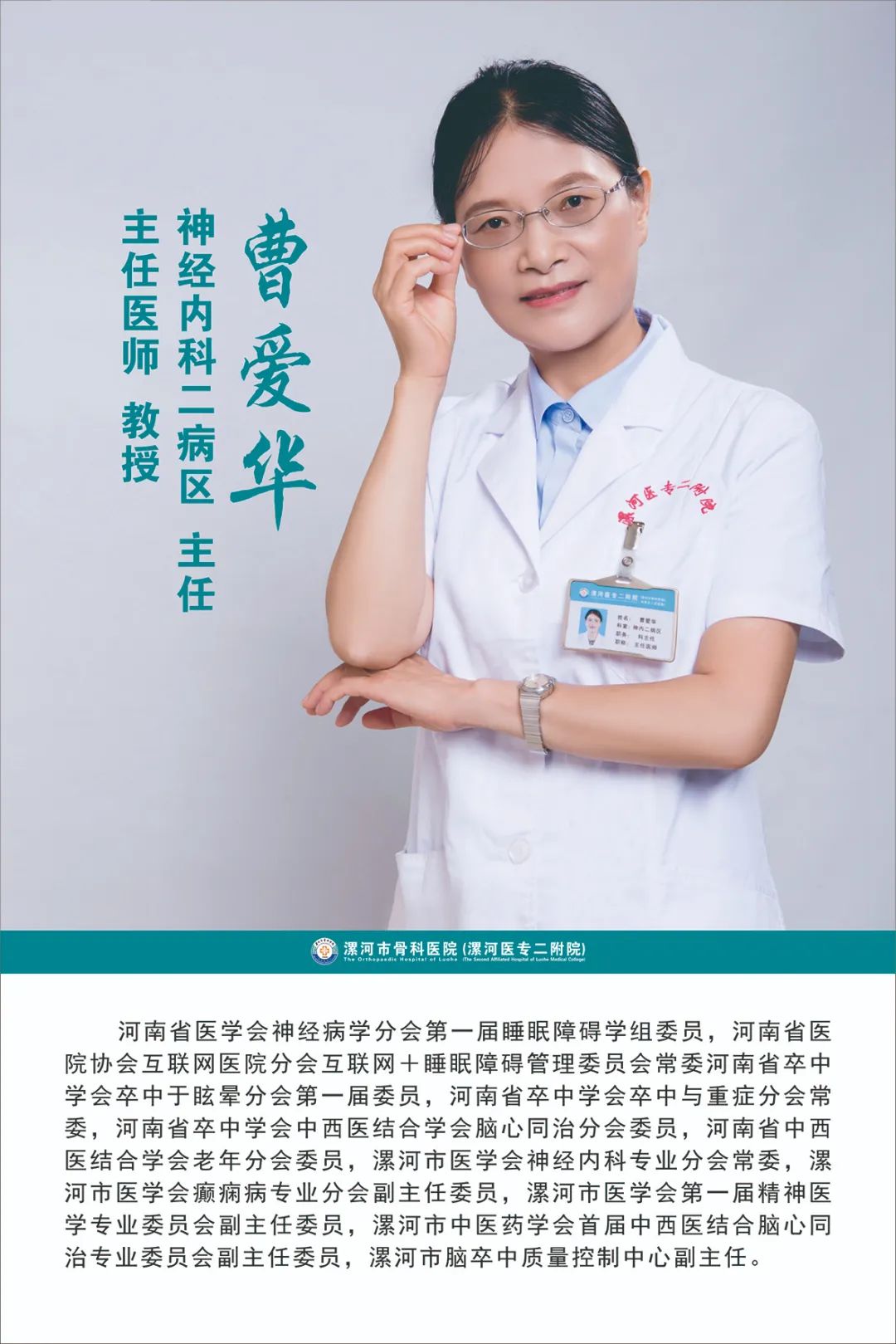 骨醫(yī)名家|漯河市骨科醫(yī)院神經(jīng)內(nèi)科二病區(qū)主任 曹愛華教授