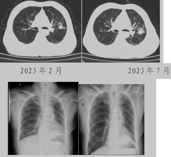 病例一:70多歲的患者王先生于2020年“急性心梗”入院時檢查發(fā)現(xiàn)了肺部結(jié)節(jié),王先生沒有在意,其間未規(guī)范復(fù)查胸部影像學(xué)檢查,于2023年2月份再次發(fā)作心絞痛時,發(fā)現(xiàn)肺結(jié)節(jié)已發(fā)展成直徑約2.5cm實性腫塊,患者在家長期口服“替格瑞洛及腸溶阿司匹林”等抗凝藥物,生活可自理,于冠狀動脈二次植入支架后三個月,收住市二院胸外科,經(jīng)心內(nèi)科、麻醉科等多學(xué)科會診后,由胸外科主任王松陽、副主任醫(yī)師薛飛及科室團隊行“單孔胸腔鏡下左上肺癌根治術(shù)”,術(shù)后結(jié)合快速康復(fù)理念,三天后拔除胸管,一周出院。
