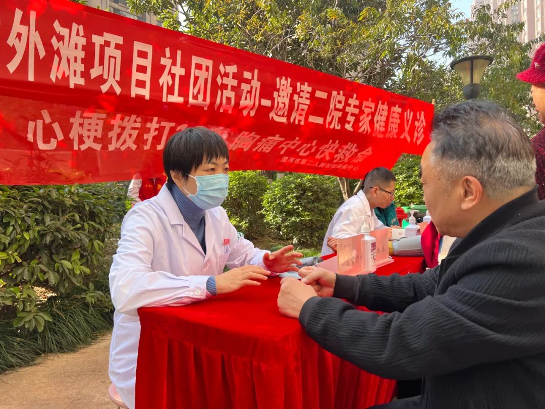 11月20日是我國心梗救治日,為更好地科普急救知識,提高群眾對心梗嚴重性與防治重要性的認知,普及急性心肌梗死的規(guī)范化救治流程,當天上午,市二院院長王瑾帶領(lǐng)心血管內(nèi)科、急診科等專家義診團隊,到源匯區(qū)昌建外灘小區(qū)舉行“心梗撥打120,胸痛中心快救命”義診活動。
