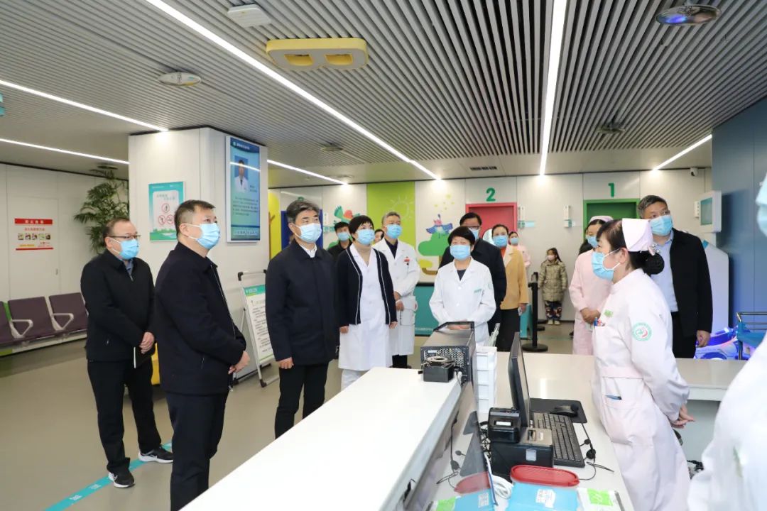 宋耀生書記一行實地查看兒科門診就醫(yī)環(huán)境和就醫(yī)秩序,詳細聽取了醫(yī)院近期兒童呼吸道疾病的診療情況和采取的一系列應對舉措,對醫(yī)院加強資源統(tǒng)籌、優(yōu)化服務流程、暢通急危重癥“綠色通道”,全力保障兒童救治工作給予了充分肯定。宋耀生書記強調,醫(yī)院要時刻關注兒童呼吸道疾病發(fā)展趨勢,發(fā)揮兒童醫(yī)院的優(yōu)勢,強化專家指導,健全重癥轉診機制,加強對基層醫(yī)療機構的指導,提升全市兒童呼吸道疾病的整體診療水平,降低重癥發(fā)生率。同時做好健康教育,加強自我防護,減少院內感染發(fā)生,另外,醫(yī)院要統(tǒng)籌好各項工作,進一步加大對臨床一線醫(yī)護人員的關心關愛,確保大家身心健康。
