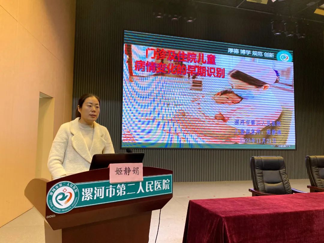 市二院兒童康復(fù)科護(hù)士長(zhǎng)姬靜娟通過(guò)《門(mén)診及住院兒童病情變化的早期識(shí)別》,講述了兒童疾病早期識(shí)別與干預(yù)的重要性及兒童疾病管理與救治方面的相關(guān)知識(shí)。