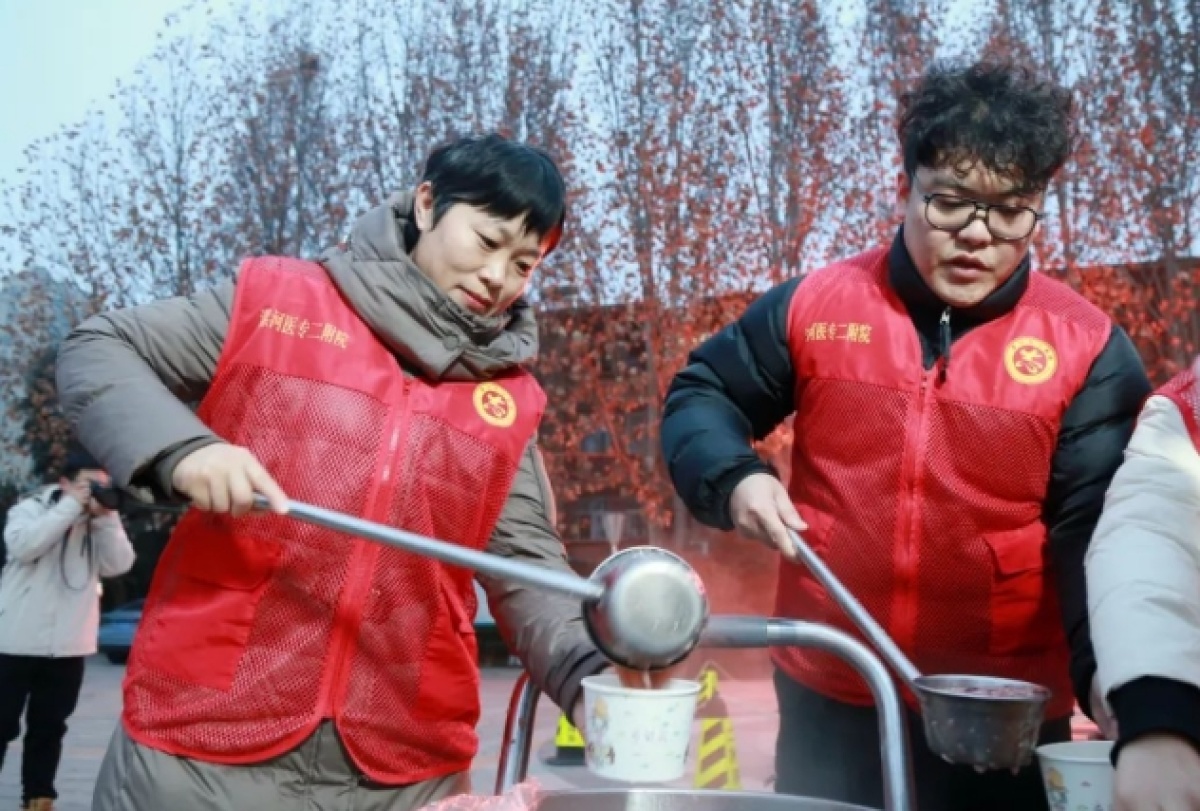 1000余碗臘八粥、600多個(gè)包子、10余斤咸菜......被悉數(shù)送出,前來領(lǐng)取愛心粥的不僅有患者及家屬,更有附近的環(huán)衛(wèi)工人和群眾。一碗碗愛心粥,不僅是暖手、暖胃,更是暖人、暖心。
