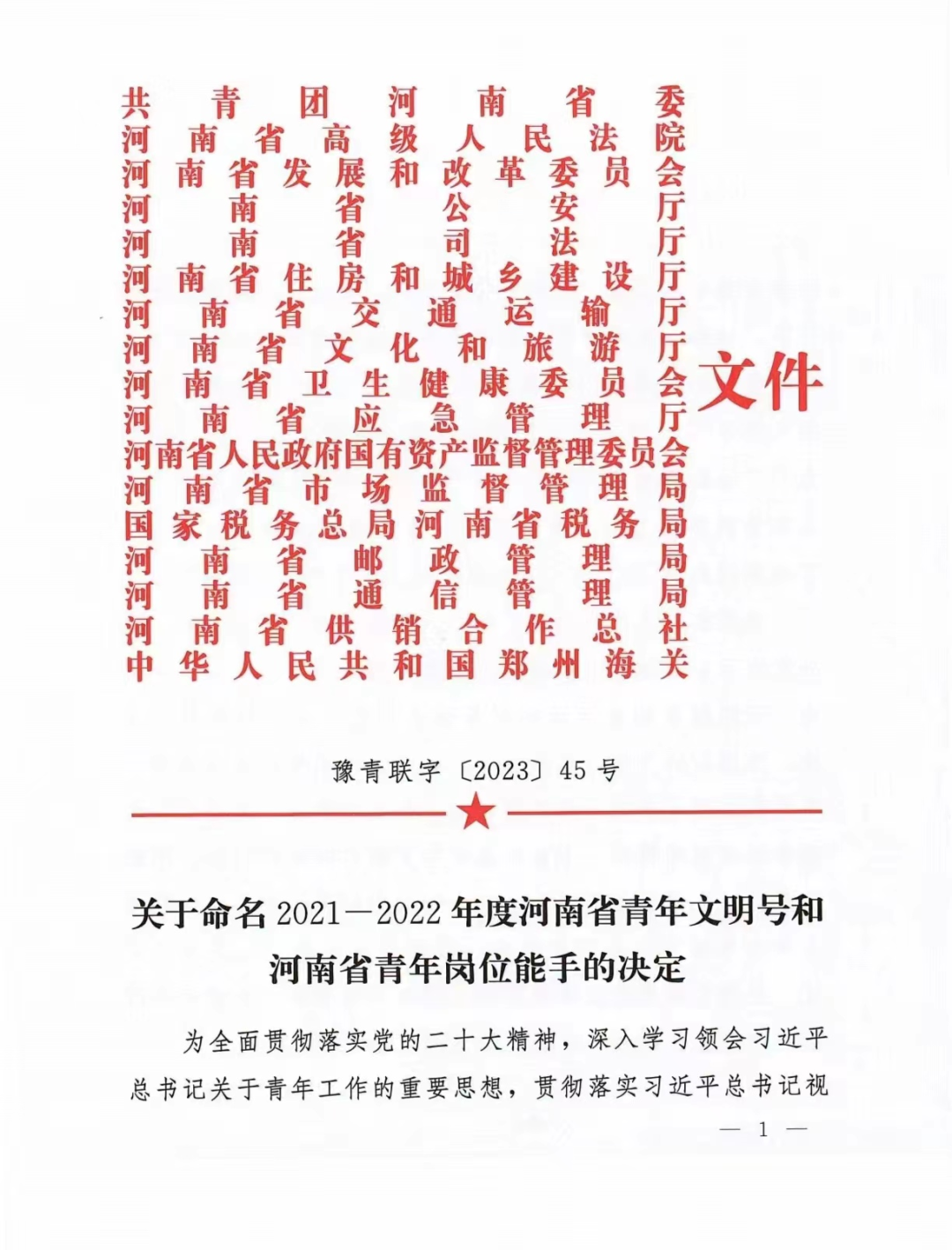 近日,共青團河南省委等部門聯(lián)合印發(fā)了《關(guān)于命名“2021-2022年度河南省青年文明號和河南省青年崗位能手”的決定》,市二院放療科被授予河南省“青年文明號”榮譽稱號。