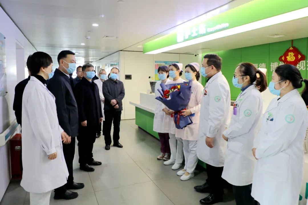 2月8日上午,新春佳節(jié)來臨之際,市衛(wèi)健委黨組成員、市紀委監(jiān)委派駐第二十一紀檢監(jiān)察組組長朱黎明一行到市二院看望慰問一線醫(yī)護人員,并送上節(jié)日的問候。黨委書記魏松、院長王瑾攜領(lǐng)導(dǎo)班子及相關(guān)職能部門負責人陪同慰問。