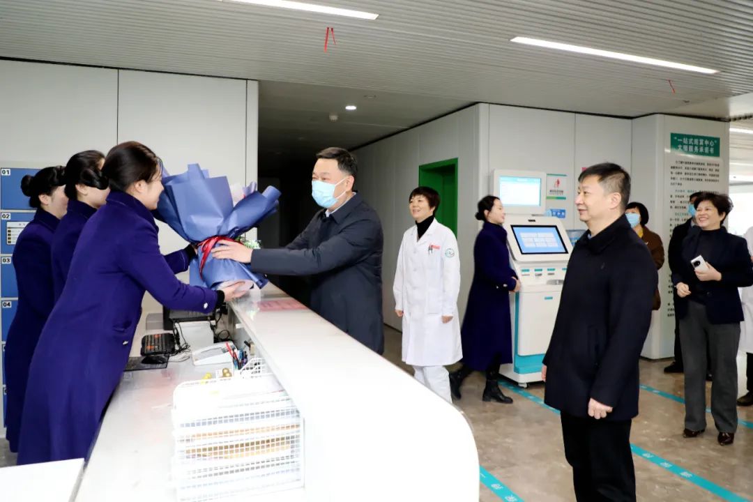朱黎明一行先后到急診科、病人服務(wù)中心、影像科、皮膚科、中醫(yī)科、小兒心血管神經(jīng)血液科,小兒呼吸內(nèi)科看望慰問醫(yī)護人員,他表示,廣大醫(yī)護人員始終奮戰(zhàn)在醫(yī)療救治的最前線,承擔著光榮而艱巨的職責使命,為護佑全市人民健康提供了堅實保障,在新春佳節(jié)到來之際,謹代表市衛(wèi)健委向辛勤奉獻的市二院全體醫(yī)護人員表達誠摯的感謝和新年的祝福。