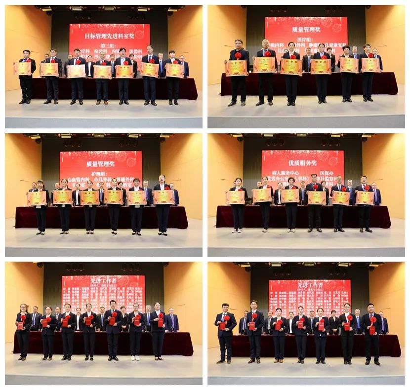本次工作會(huì)是醫(yī)院開(kāi)啟2024年高質(zhì)量發(fā)展新篇章、奮進(jìn)三甲創(chuàng)建新征程關(guān)鍵節(jié)點(diǎn)上召開(kāi)的鼓干勁、聚合力的重要會(huì)議。副院長(zhǎng)謝彩玲、副院長(zhǎng)郭長(zhǎng)根、紀(jì)委書(shū)記孟德陽(yáng)、副院長(zhǎng)張曉東、工會(huì)主席李世學(xué)按照大會(huì)既定議程,依次宣讀了2023年度先進(jìn)集體、先進(jìn)工作者等表彰文件和表彰名單,對(duì)2023年度特殊貢獻(xiàn)獎(jiǎng)、目標(biāo)管理先進(jìn)科室、質(zhì)量管理獎(jiǎng)、優(yōu)質(zhì)服務(wù)獎(jiǎng)、先進(jìn)工作者進(jìn)行了表彰。被表彰科室代表和先進(jìn)個(gè)人代表披紅戴花,精神抖擻,從院領(lǐng)導(dǎo)手中接過(guò)象征榮譽(yù)和期望的獎(jiǎng)牌、獎(jiǎng)狀,熱烈的掌聲響徹學(xué)術(shù)報(bào)告廳,展現(xiàn)了二院人奮勇拼搏、干必出彩的良好精神風(fēng)貌,為新的一年工作擂響了戰(zhàn)鼓,鼓足了干勁。