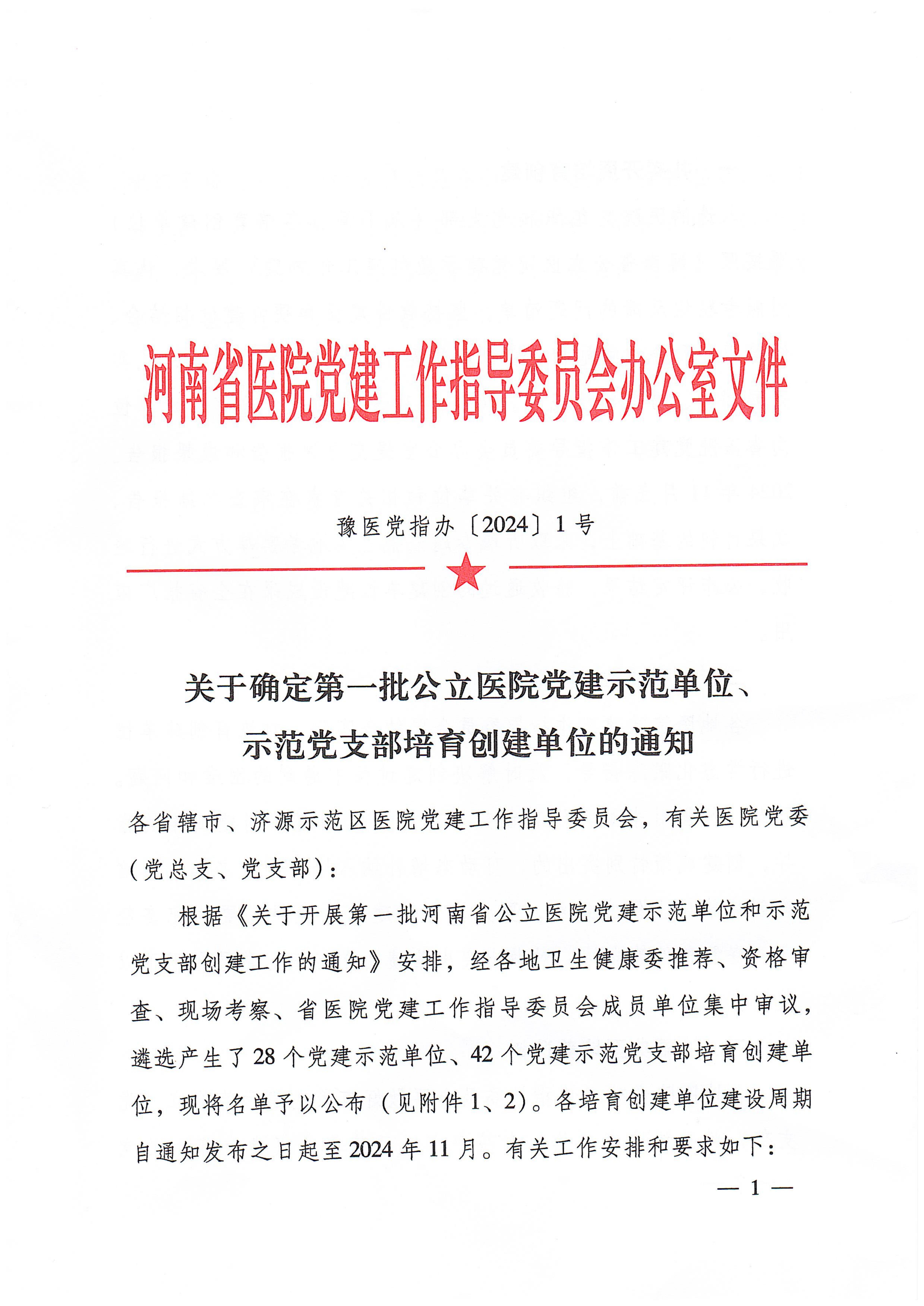 近日,河南省醫(yī)院黨建工作指導(dǎo)委員會下發(fā)《關(guān)于確定第一批公立醫(yī)院黨建示范單位、示范黨支部培育創(chuàng)建單位的通知》,市二院黨委被確定為河南省公立醫(yī)院黨建示范單位(培育創(chuàng)建單位),是全省28個黨建示范單位之一、漯河地區(qū)唯一。