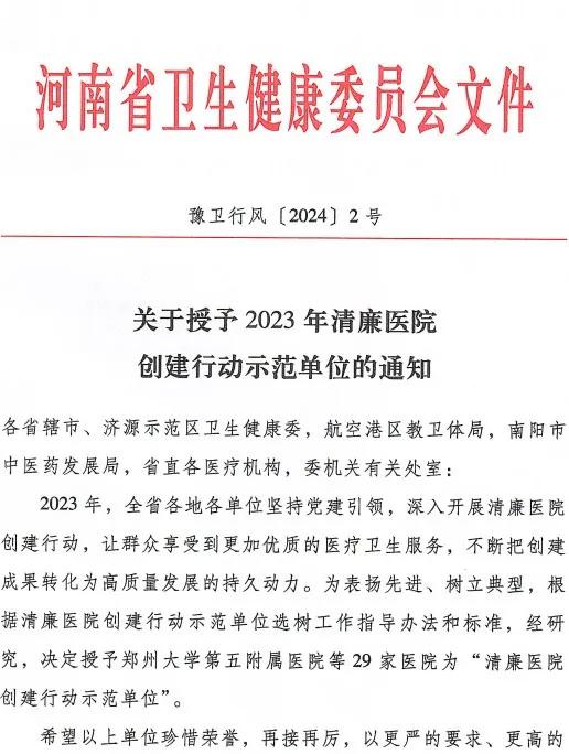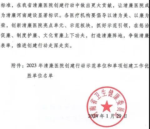 創(chuàng)建清廉醫(yī)院 守護人民健康——漯河醫(yī)專二附院被授予2023年省級清廉醫(yī)院創(chuàng)建行動示范單位