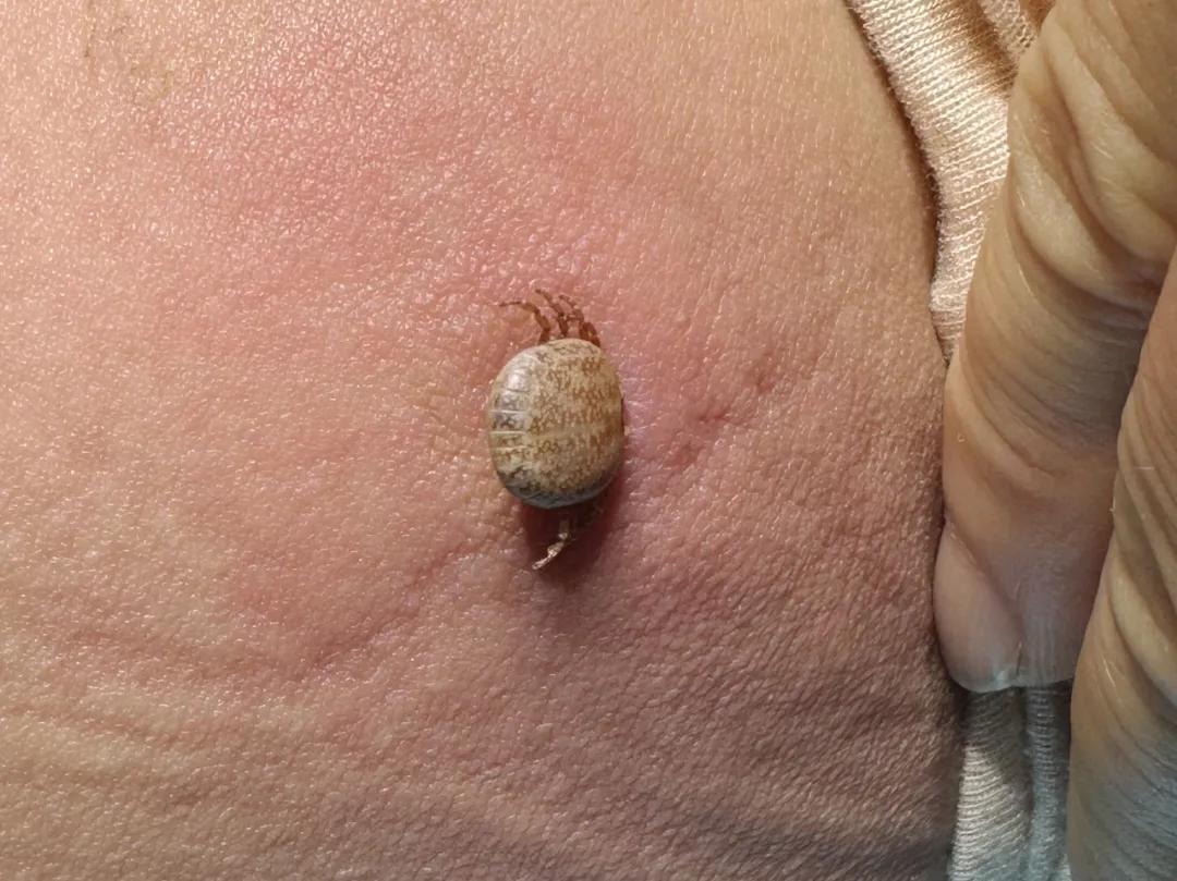 44歲的馬女士,3天前曾在南陽山地茶園采摘春茶,不知不覺中被蜱蟲咬傷右側(cè)大腿內(nèi)側(cè),因局部疼痛,同行人員幫忙查看發(fā)現(xiàn)有一個(gè)黑色的“小圓粒”,以為是皮膚上長了疣,后來發(fā)現(xiàn)異物長有多條腿,并且會(huì)蠕動(dòng)。因此種情況不是十分常見,馬女士回家后輾轉(zhuǎn)多家醫(yī)院診治均無法取出。
