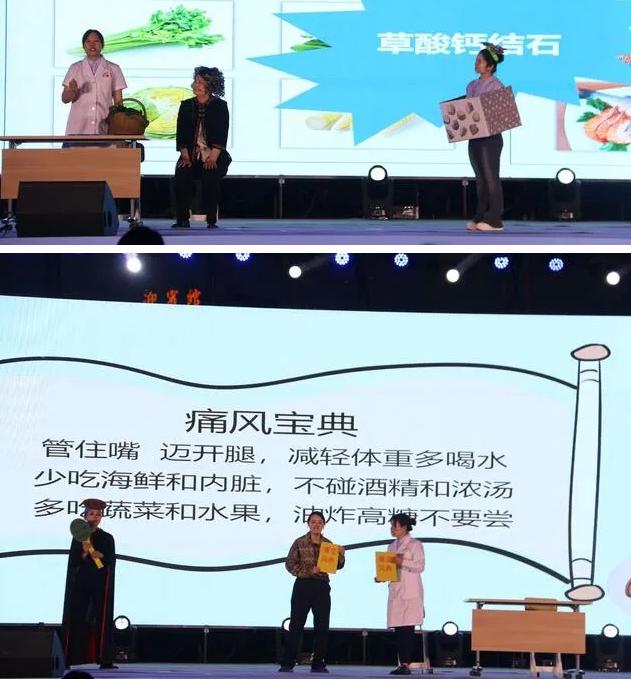 現(xiàn)場醫(yī)護(hù)人員展示的《與“食”俱進(jìn) “石”不再來》《燃燒我的卡路里》《過量飲酒 “肝”敗下風(fēng)》《惹不起的痛風(fēng)君》《當(dāng)胸痛來臨時》《美麗的陷阱》等作品,形式新穎,采用情景劇、順口溜、快板等生動活潑、詼諧有趣的表演方式,圍繞健康生活方式、營養(yǎng)健康知識、慢性病防治等主題,進(jìn)行通俗易懂、生動形象地講解,贏得現(xiàn)場評委和線上線下觀眾一致好評。