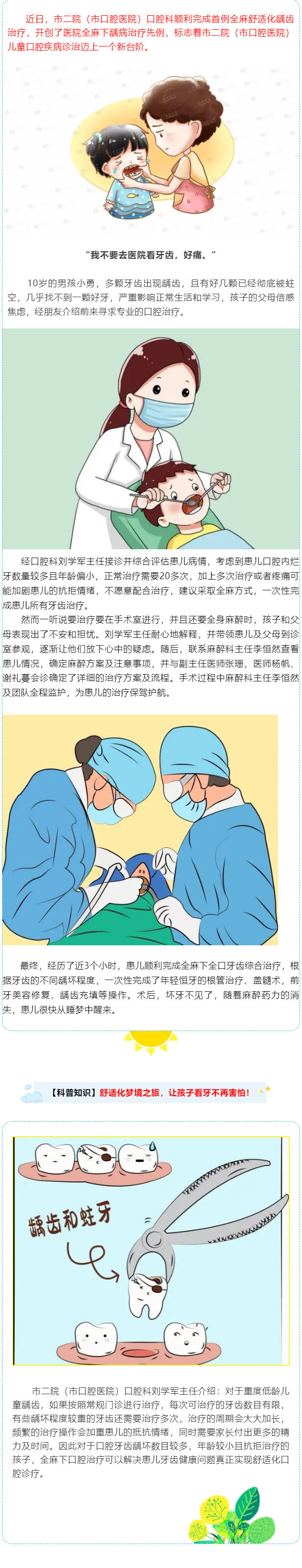 孩子“睡一覺”壞牙補好了,市二院開展首例全麻舒適化齲齒治療