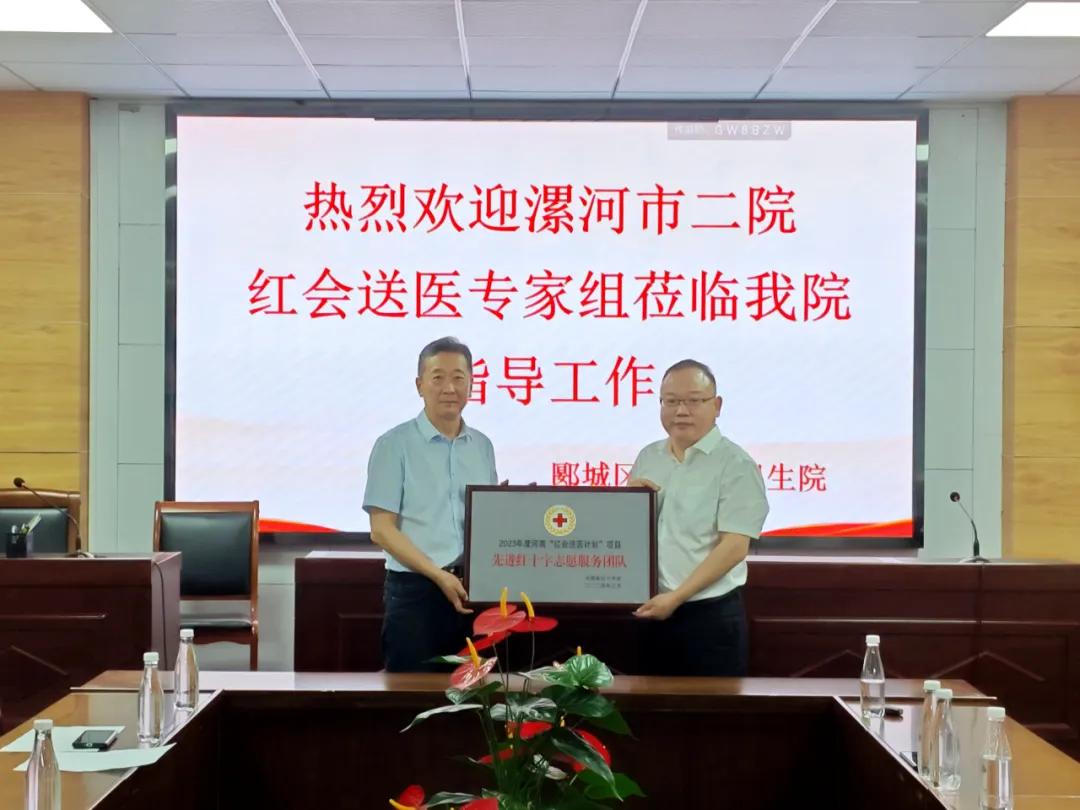 漯河市紅十字會(huì)黨組成員、副會(huì)長(zhǎng)劉國(guó)防,市二院副院長(zhǎng)張曉東,市二院工會(huì)主席李世學(xué),郾城區(qū)紅十字會(huì)副會(huì)長(zhǎng)李山峰,龍城鎮(zhèn)衛(wèi)生院相關(guān)負(fù)責(zé)同志出席了本次對(duì)接會(huì)議和義診活動(dòng)。對(duì)接會(huì)上,市紅會(huì)副會(huì)長(zhǎng)劉國(guó)防對(duì)市二院“紅會(huì)送醫(yī)計(jì)劃”所做的工作表示了高度的肯定,并向醫(yī)院頒發(fā)了2023年河南省“紅會(huì)送醫(yī)計(jì)劃”先進(jìn)單位、2023年漯河市“紅會(huì)送醫(yī)計(jì)劃”先進(jìn)單位兩塊獎(jiǎng)牌,對(duì)市二院李慧新等7名同志獲得省級(jí)和市級(jí)“優(yōu)秀紅十字醫(yī)療專(zhuān)家志愿者”稱(chēng)號(hào)表示祝賀。