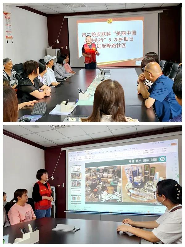 在第十八屆“5.25全國護膚日”即將到來之際,為深入踐行“健康中國”戰(zhàn)略,普及皮膚健康知識,提升公眾護膚意識,共筑皮膚健康防線,市二院(市皮膚病醫(yī)院)皮膚科走進受降路社區(qū)開展“美麗中國,皮膚先行”健康科普宣傳活動。