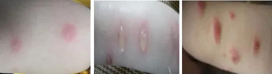 群集或散在的綠豆至花生米大小,略帶紡錘形的紅色風團樣損害,頂端常有小水皰,有的發(fā)生后不久便成為半球形隆起的緊張性大水皰,內容清,有的皮疹為較硬的粟粒樣大丘疹,搔抓后呈風團樣腫大,多見于嬰幼兒及兒童,成人亦可患病,往往同一家庭中幾人同時發(fā)病,陣發(fā)性瘙癢,多于入夜加重。