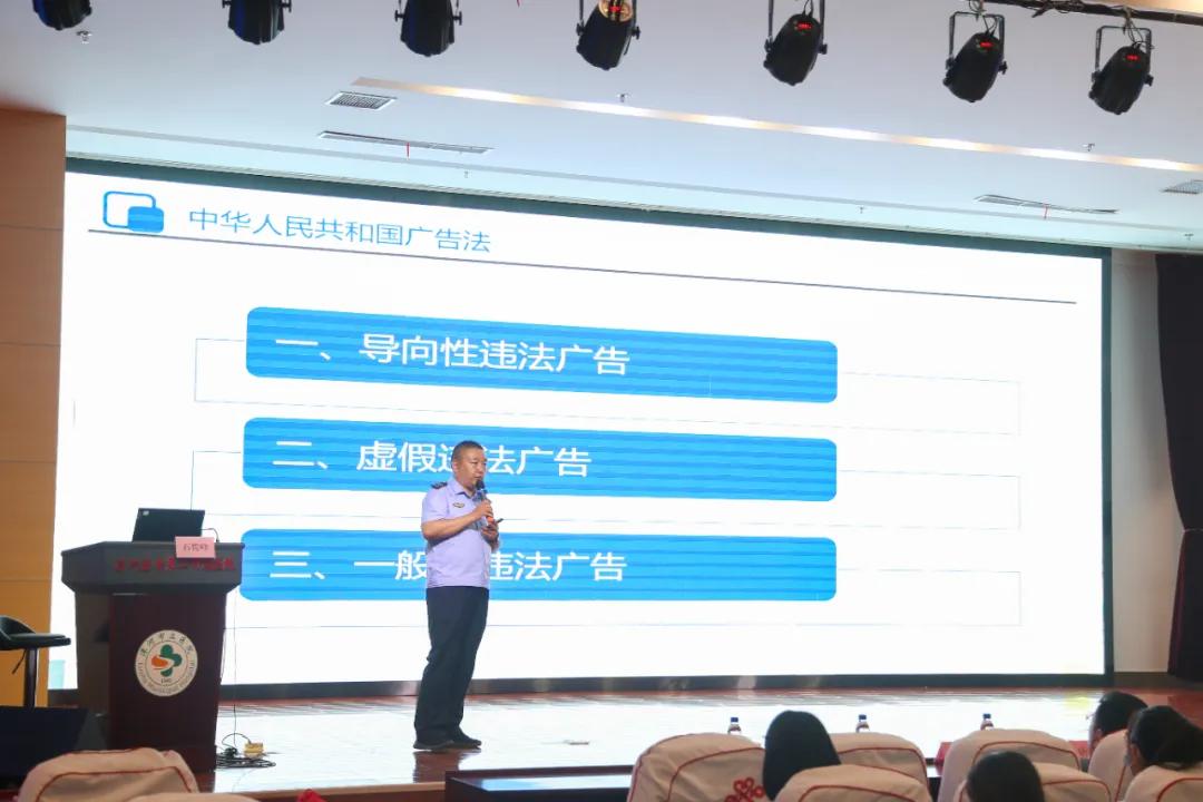 在隨后的授課過程中,石俊峰科長圍繞醫(yī)療廣告的特征形式、禁區(qū)紅線、處罰標準、質(zhì)量提升、案例解讀等五個方面,對《廣告法》《醫(yī)療廣告管理辦法》等與醫(yī)療廣告相關的法律法規(guī),以及廣告用語規(guī)范、內(nèi)部審查要求、案例分析等進行了詳細講解。既有理論深度,又通過大量詳實的案例分享寶貴經(jīng)驗,使大家受益匪淺。石俊峰提出,作為醫(yī)院通訊員,應充分認識醫(yī)院宣傳工作的重要性,既加強宣傳力度,又把握宣傳尺度,加強學習,夯實本領,不斷提高自身的宣傳能力與水平。