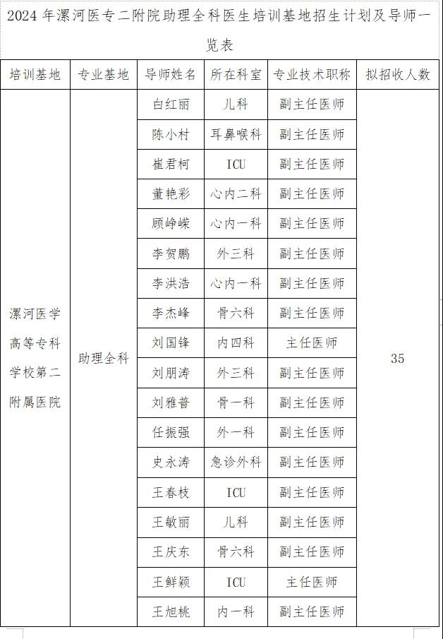 為深入貫徹落實(shí)《關(guān)于印發(fā)助理全科醫(yī)生培訓(xùn)實(shí)施意見(試行)的通知》(國衛(wèi)科教發(fā)〔2016〕14 號(hào)),根據(jù)《河南省衛(wèi)生健康委關(guān)于做好2024年助理全科醫(yī)生培訓(xùn)招收工作的通知》(豫衛(wèi)科教函〔2024〕19號(hào))要求,結(jié)合本院實(shí)際,現(xiàn)制定漯河醫(yī)學(xué)高等??茖W(xué)校第二附屬醫(yī)院2024年助理全科醫(yī)生培訓(xùn)招收方案如下: