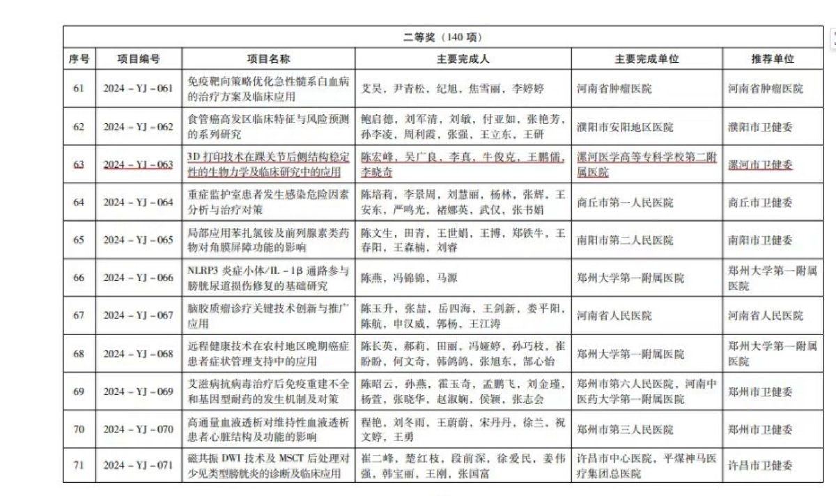 2024年度河南醫(yī)學科技獎"出爐",漯河市骨科醫(yī)院"中獎"三個項目!