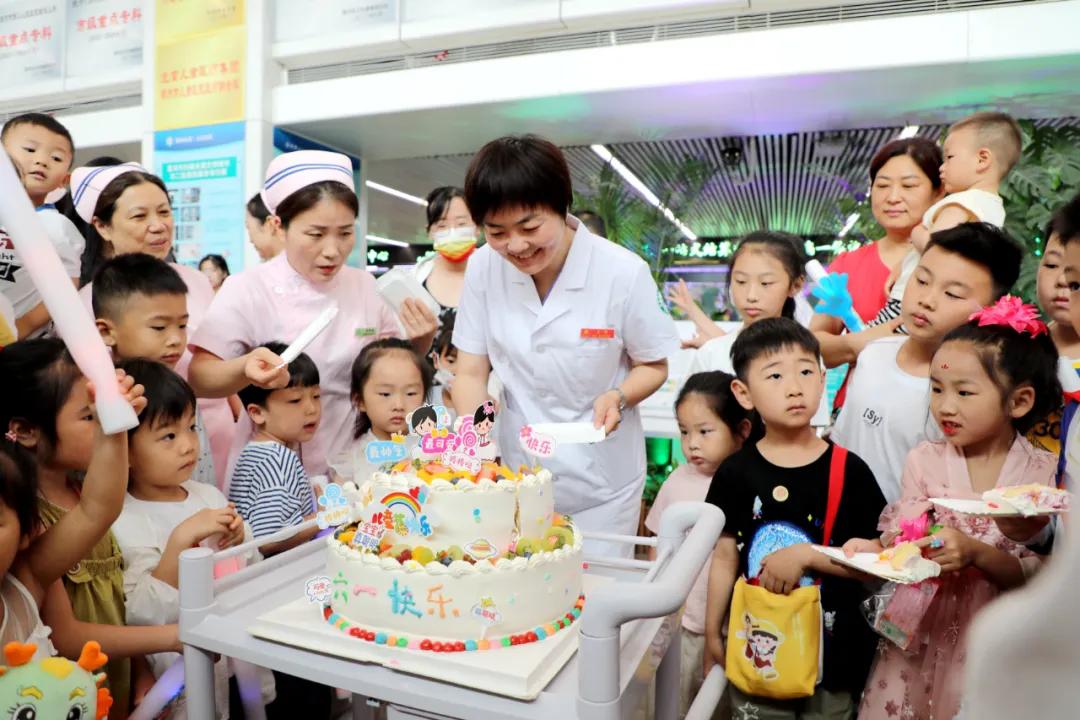 在門診大廳,黨委書記魏松、院長王瑾與兒科專家、護士長、孩子們一起切下節(jié)日蛋糕,并代表全院醫(yī)護人員對孩子們表示衷心的祝福,希望孩子們健康快樂成長?,F(xiàn)場,醫(yī)護人員化身白雪公主、花仙子、小黃人、網(wǎng)紅青蛙與小朋友們熱情互動,友好交流,派發(fā)精心準備的節(jié)日禮物。