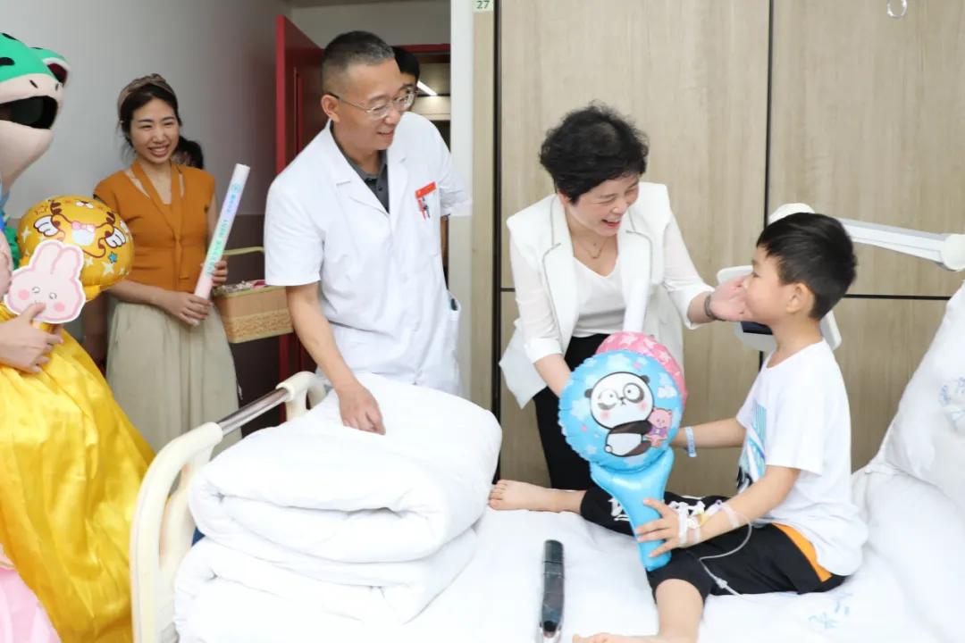 6月1日上午,市二院黨委書記魏松、院長王瑾攜班子成員、市兒童醫(yī)療中心主任蘇愛芳及兒科專家、相關(guān)科室人員來到門診大廳、兒科門診與病區(qū)為小朋友們送上暖心的節(jié)日禮物與祝福,與孩子們共度“六一”。