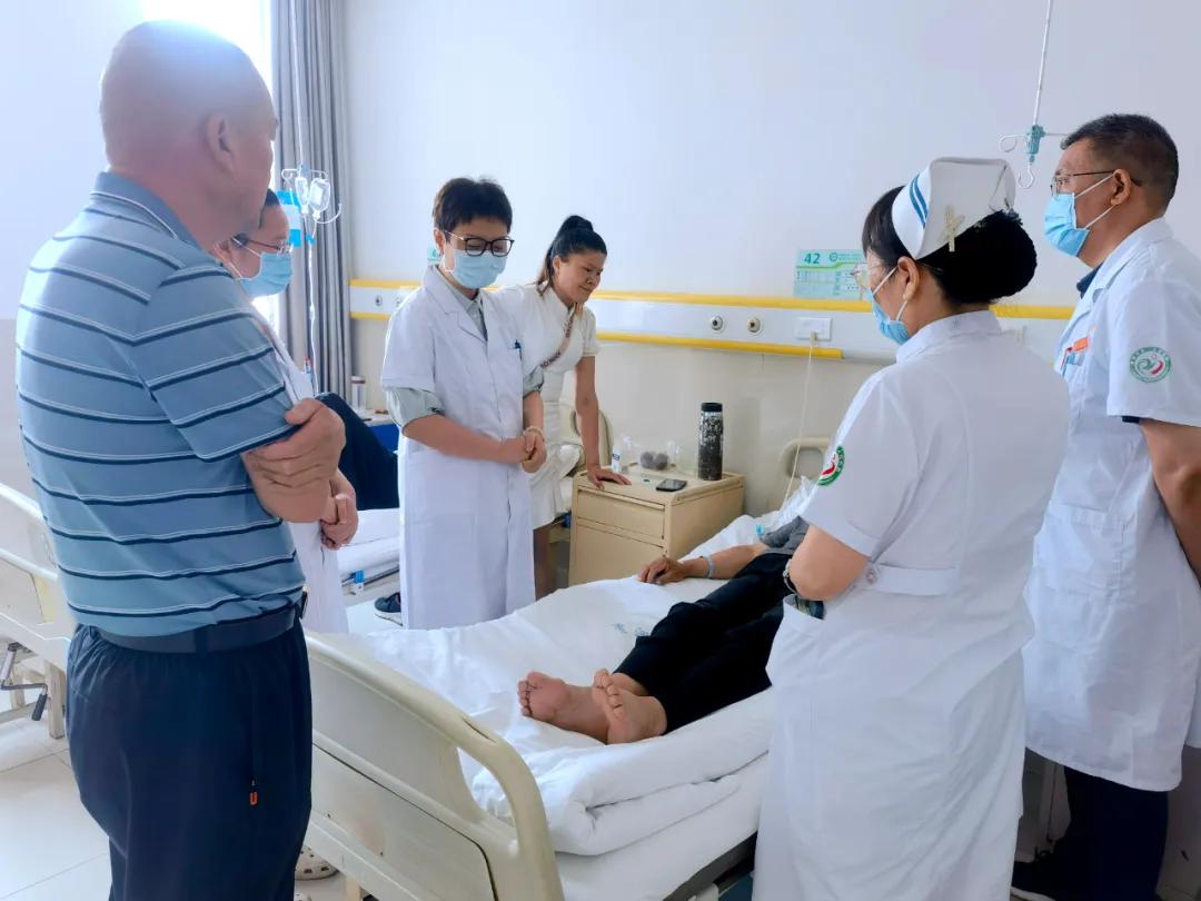 隨后,唐琳教授一行在市二院消化腎病科關(guān)文明主任及護(hù)士長(zhǎng)徐偉芹陪同下走進(jìn)病區(qū),進(jìn)行教學(xué)查房、指導(dǎo)。65歲的何先生患有慢性腎臟疾病,曾輾轉(zhuǎn)多家醫(yī)院接受治療,但因依從性不佳,無(wú)法有效配合診療方案,導(dǎo)致治療效果不甚理想。唐琳教授了解情況后,憑借豐富的臨床經(jīng)驗(yàn),耐心細(xì)致地查看了患者的病歷資料,并針對(duì)患者的生活習(xí)慣、疾病認(rèn)知及治療方案進(jìn)行了深入的分析和講解。她以通俗易懂的方式,向患者解釋了疾病的成因、吸煙飲酒等不良生活習(xí)慣對(duì)疾病的影響,以及不同治療方案的優(yōu)缺點(diǎn),使患者深刻認(rèn)識(shí)到積極配合治療的重要性。