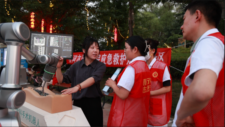 除了提供義診服務外,醫(yī)療專家志愿者們還進行了“天璣Ⅱ”骨科機器人展示,向市民介紹了該機器人在數(shù)字智能醫(yī)療領域的應用、技術特點、臨床優(yōu)勢以及實際案例等方面內(nèi)容,將優(yōu)質(zhì)的醫(yī)療資源和先進的醫(yī)療技術帶到基層老百姓身邊。