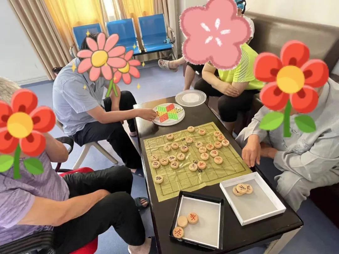 走進(jìn)活動(dòng)室我們首先看到的是有的患者手中拿著筆,在信紙上認(rèn)真地傾訴著自己的內(nèi)心世界,意為發(fā)泄,也是與自己的一次和解。有的患者則在醫(yī)務(wù)人員的指導(dǎo)下,制作手工藝品,從一開(kāi)始的笨拙生疏,到漸漸的熟練流暢,他們的作品從無(wú)到有,從簡(jiǎn)到繁,無(wú)不展現(xiàn)出獨(dú)特的創(chuàng)意和個(gè)性。更有兩兩對(duì)坐的患者在棋局上戰(zhàn)得酣暢淋漓,快意人生。對(duì)于愛(ài)運(yùn)動(dòng)的患者,我們工娛護(hù)士則跟著視頻課程帶領(lǐng)大家揮灑汗水,恣意瀟灑。