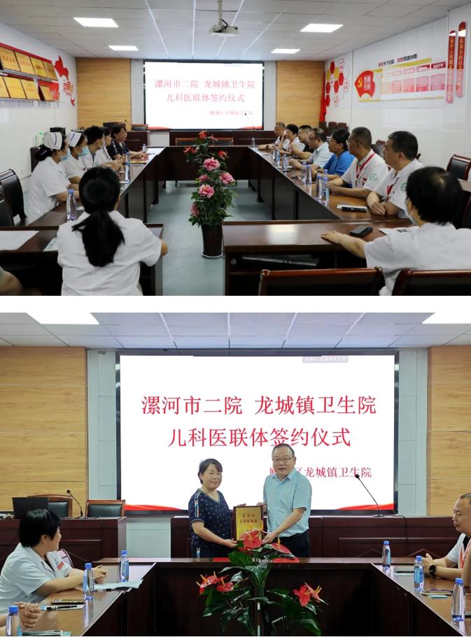 為提升漯河市兒科醫(yī)療服務(wù)能力,順暢危重、疑難、康復(fù)患者雙向轉(zhuǎn)診渠道,促進區(qū)域資源共享、信息互聯(lián)互通,推動分級診療制度建設(shè),6月19日,市二院與龍城鎮(zhèn)衛(wèi)生院舉行了兒科醫(yī)聯(lián)體簽約暨授牌儀式。市二院副院長張曉東、郾城區(qū)紅十字會副會長李山峰、龍城鎮(zhèn)衛(wèi)生院院長葛雙云及相關(guān)科室人員參加了本次活動。