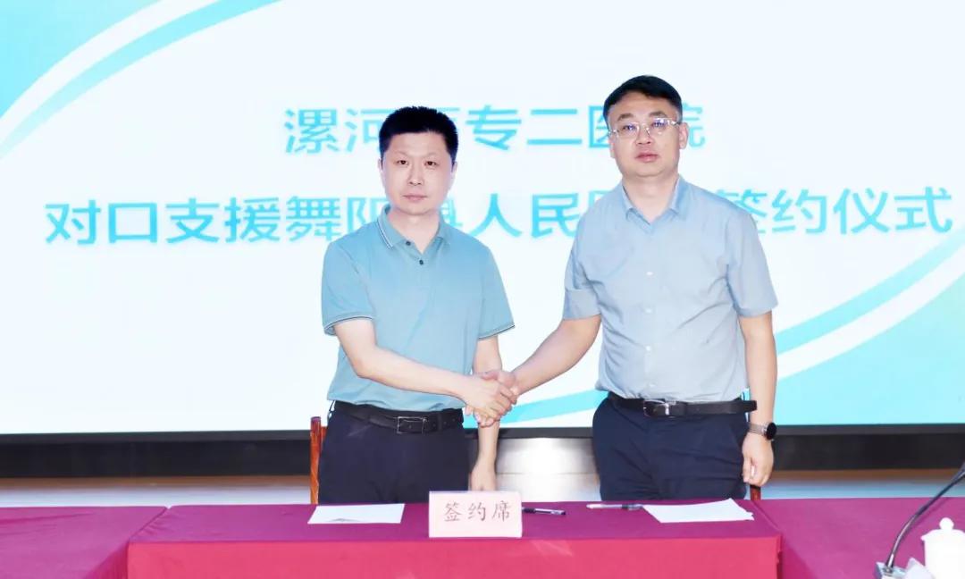 6月25日,漯河市骨科醫(yī)院對(duì)口支援舞陽(yáng)縣人民醫(yī)院協(xié)議書(shū)簽訂儀式在舞陽(yáng)縣人民醫(yī)院會(huì)議室舉行。漯河市骨科醫(yī)院黨委書(shū)記柴運(yùn)洪、漯河市骨科醫(yī)院副院長(zhǎng)鄭建新、舞陽(yáng)縣衛(wèi)健委副主任朱迎民、舞陽(yáng)縣衛(wèi)健委醫(yī)政股股長(zhǎng)遠(yuǎn)彩月,舞陽(yáng)縣人民醫(yī)院黨委書(shū)記、院長(zhǎng)趙樂(lè),全體對(duì)口支援醫(yī)師及受援科室主任出席儀式。