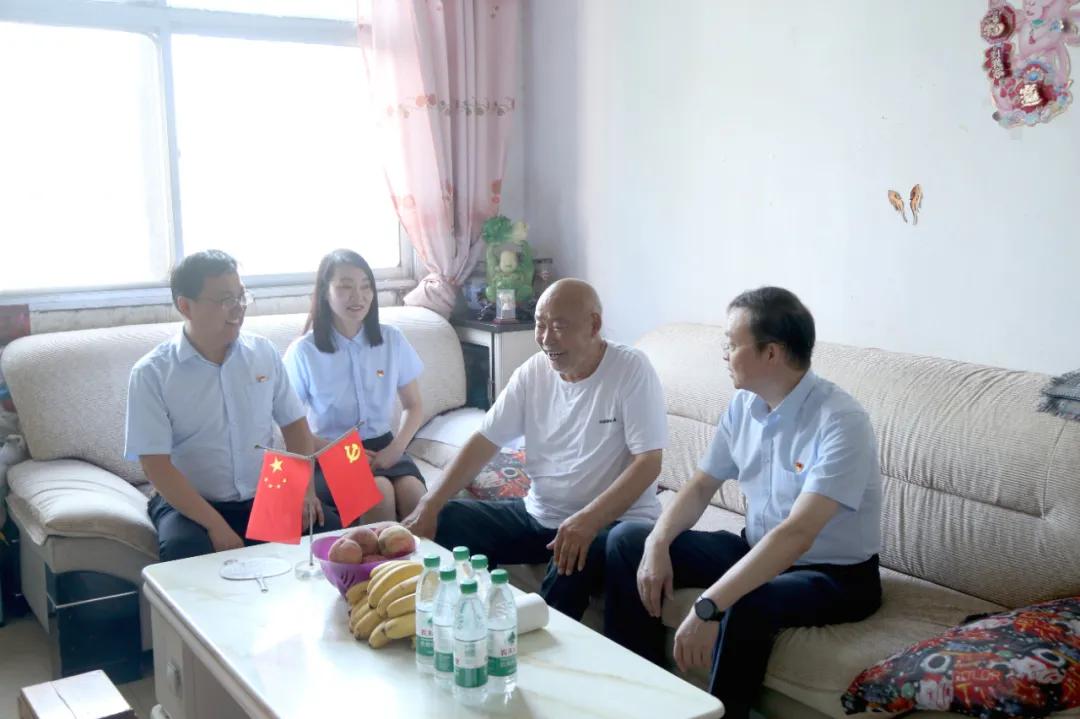 在老黨員張德海家中,院長李奎向其送上節(jié)日的祝福和慰問品,并詳細(xì)詢問了老黨員的家庭情況、身體狀況,傾聽其回顧愛黨、護(hù)黨、與黨同行的事跡。他表示,院黨委將一如既往地關(guān)心和支持老黨員們的生活,確保他們的晚年生活幸福安康。