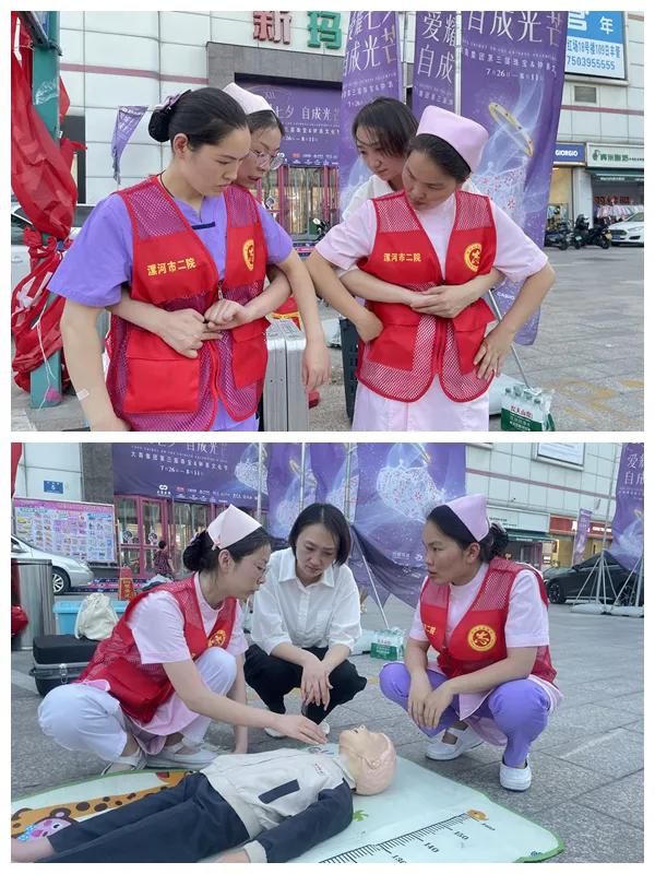 同時(shí),兒童重癥醫(yī)學(xué)科醫(yī)務(wù)人員講解了心肺復(fù)蘇、海姆立克等急救知識,為現(xiàn)場群眾演示指導(dǎo)并帶領(lǐng)大家上手實(shí)際操作。