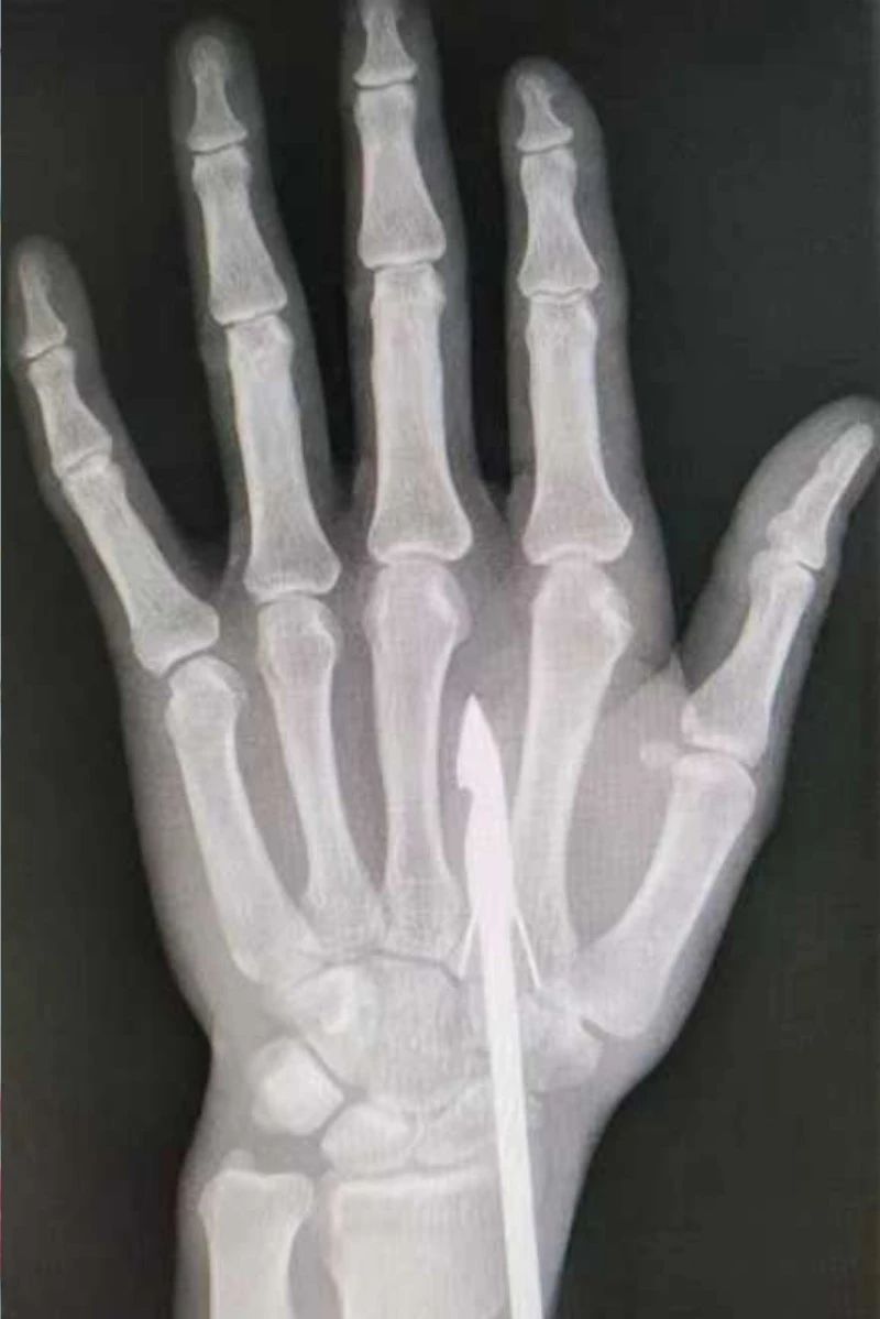 時間緊迫,每一秒的流逝都可能對傷者的手部功能造成不可逆的損害。接診醫(yī)生代彭威,迅速對傷者進(jìn)行了初步檢查。他注意到,魚鉤已經(jīng)深深嵌入皮膚,情況遠(yuǎn)比表面看起來復(fù)雜。沒有絲毫猶豫,立即安排了X線檢查以確認(rèn)魚鉤的位置及傷及范圍,以及急診化驗(yàn)檢查以評估患者的整體狀況。