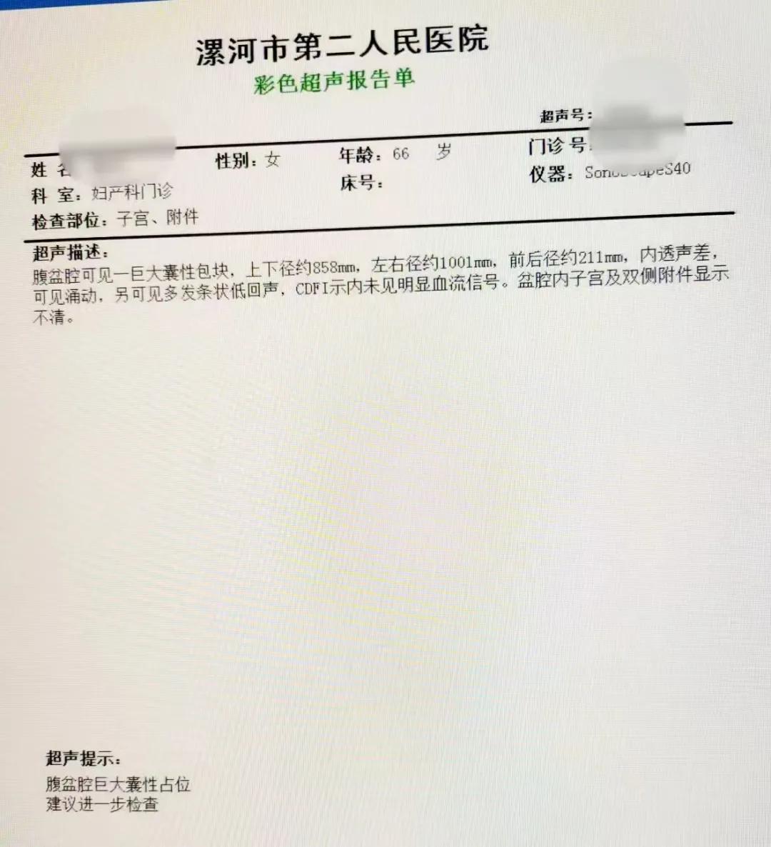 據(jù)了解,患者為老年女性,66歲,8月3日以“雙側(cè)卵巢粘液性囊腺瘤術后8年,腹部進行性增大7年”為主訴入住婦產(chǎn)科。8年前患者曾在市二院婦產(chǎn)科行雙側(cè)卵巢粘液性囊腺瘤切除+闌尾粘液性囊腫切除術,術后至今未能堅持定期復查。近半年來患者腹部膨隆尤為明顯,飲食差、營養(yǎng)差,腹脹難忍,身心極為痛苦。入院查體:腹部增大如懷孕9個月大小,雙下肢腫脹明顯。彩超提示:腹盆腔巨大囊性占位(858x1001x211mm)。全腹+盆腔CT+增強提示:腹盆腔大量不規(guī)則囊實性液性密度影大小約128x87x125mm,腹腔臟器、子宮、直腸明顯受壓、推移。