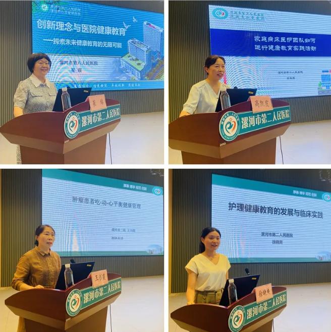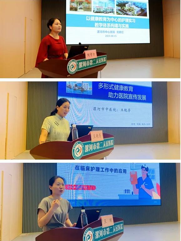 學(xué)術(shù)交流會(huì)上,來自全市各級(jí)醫(yī)療機(jī)構(gòu)的護(hù)理健康教育專家們齊聚一堂,結(jié)合自身的實(shí)踐經(jīng)驗(yàn)和研究成果,共同探討護(hù)理健康教育的新理念、新方法、新技術(shù)。市中心醫(yī)院護(hù)理部副主任劉素紅講解了《以健康教育為中心的護(hù)理實(shí)習(xí)教學(xué)體系構(gòu)建與實(shí)施》,分享醫(yī)院在護(hù)理實(shí)習(xí)教學(xué)中以健康教育為中心開展帶教的亮點(diǎn)、實(shí)踐經(jīng)驗(yàn)和對(duì)未來的展望;市中醫(yī)院呼吸消化科護(hù)士長王艷芳講解了《多形式健康教育助力醫(yī)院宣傳發(fā)展》,分享醫(yī)院開展健康教育項(xiàng)目的具體實(shí)施和取得的成效;市醫(yī)專二附院中醫(yī)骨傷科護(hù)士長王瓊講解了《健康宣教在臨床護(hù)理工作中的應(yīng)用》,通過了解健康教育的方式方法談到如何把健康教育落到實(shí)處;市六院護(hù)理部副主任崔臻講解了《創(chuàng)新理念與健康教育》,通過對(duì)傳統(tǒng)健康教育模式的反思談到創(chuàng)新理念在健康教育中的應(yīng)用;市二院護(hù)理部主任高凱霞講解了《家庭病床醫(yī)護(hù)團(tuán)隊(duì)如何進(jìn)行健康教育實(shí)踐活動(dòng)》,通過案例展示如何開展健康教育;市二院普外科護(hù)士長王書霞、神經(jīng)內(nèi)科護(hù)士長徐曉爽分別講解了《腫瘤患者吃-動(dòng)-心平衡健康管理》《護(hù)理健康教育的發(fā)展與臨床實(shí)踐》,運(yùn)用實(shí)例、典故等強(qiáng)調(diào)健康教育的必要性和重要性,展示了臨床工作中取得的成果。
