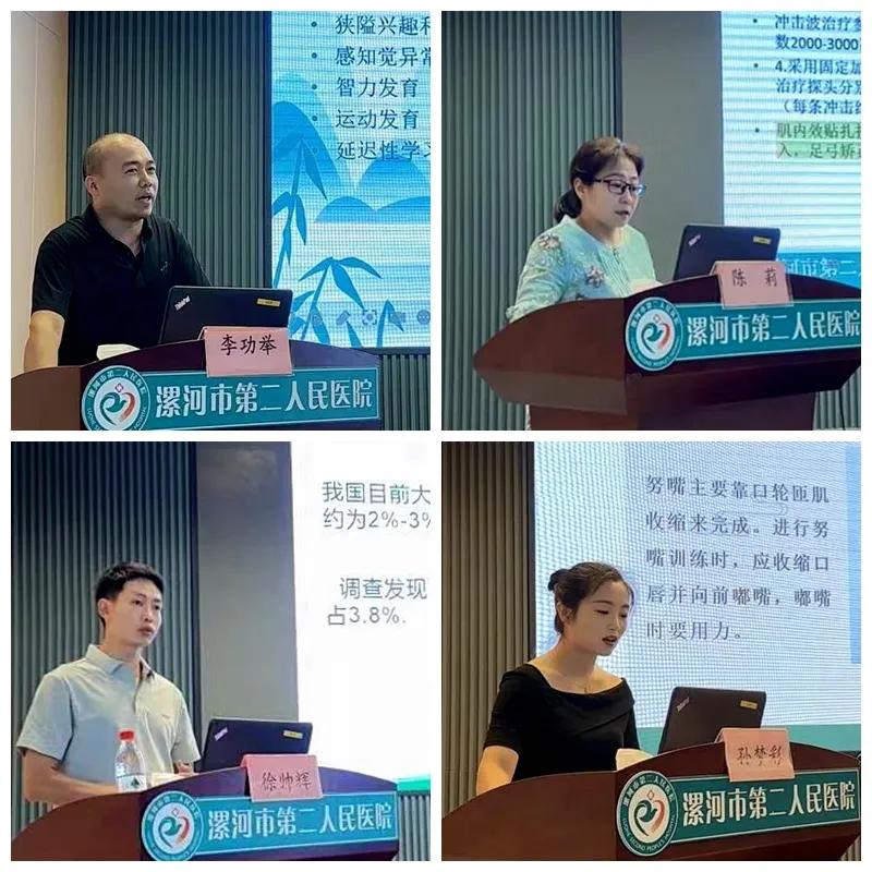 學術交流環(huán)節(jié),河南省康復醫(yī)學會會長、河南省中醫(yī)院院長馮曉東、市二院中醫(yī)科主任朱青霞、市康復醫(yī)學會會長王海濤、市醫(yī)專三附院兒童康復科副主任李功舉、市二院中醫(yī)科副主任治療師陳莉、臨潁縣人民醫(yī)院康復科主管治療師徐帥輝、市二院中醫(yī)科康復治療師孫夢彩,分別就《銀發(fā)經濟與康復醫(yī)學發(fā)展》《急性神經根型頸椎病的綜合治療》《疼痛的康復評估和常用手法技術治療》《孤獨癥兒童情緒行為管理與教學策略》《脊柱側凸的診斷與治療》《沖擊波療法在疼痛疾病中的應用》《面癱的康復鍛煉》為題進行了全面細致地講解。