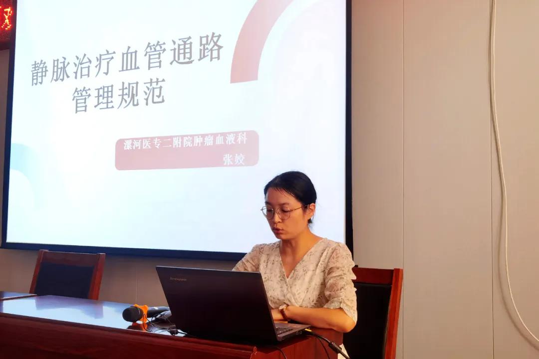張姣主管護(hù)師以《靜脈治療血管通路管理規(guī)范》為主題,分享了靜脈治療常用的血管通路的選擇、評(píng)估,以及導(dǎo)管維護(hù)相關(guān)專家共識(shí)的解讀內(nèi)容。