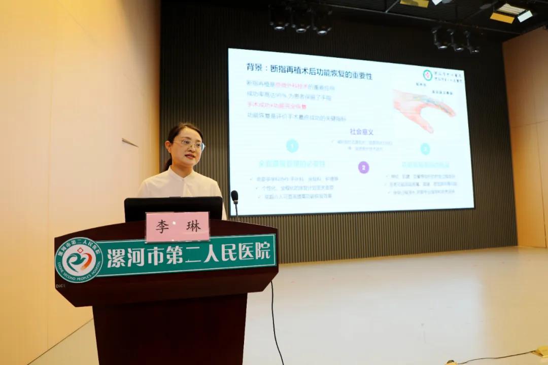 學(xué)術(shù)交流會(huì)上,市中心醫(yī)院創(chuàng)傷骨科外科護(hù)理規(guī)培基地秘書李琳講解了《全程康復(fù)護(hù)理管理模式在斷指再植患者術(shù)后功能恢復(fù)中的應(yīng)用》,分享醫(yī)院的全程康復(fù)護(hù)理管理模式,實(shí)現(xiàn)了從術(shù)前準(zhǔn)備到長(zhǎng)期隨訪的全程管理,提高了康復(fù)治療的標(biāo)準(zhǔn)性和個(gè)體化水平。