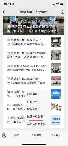 2.可以關(guān)注漯河市第二人民醫(yī)院微信公眾號,進(jìn)入公眾號頁面。