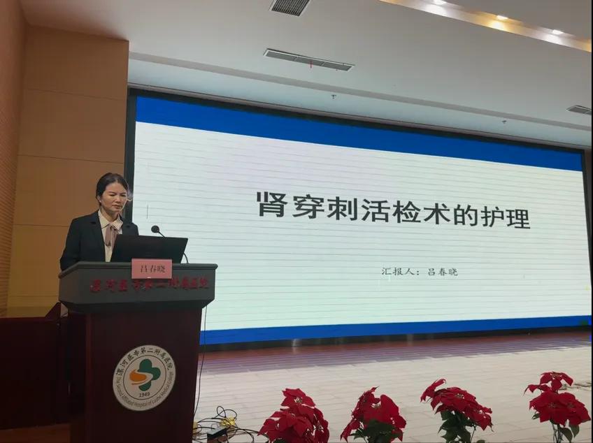 腎穿刺活檢術(shù)是腎臟病病理診斷的唯一方法,有助于進(jìn)一步了解疾病的發(fā)生、發(fā)展及轉(zhuǎn)歸,血液凈化室護(hù)士長(zhǎng)呂春曉以《腎穿刺活檢術(shù)的護(hù)理》為題,針對(duì)腎穿活檢術(shù)的目的、適應(yīng)癥、禁忌癥、術(shù)前、術(shù)中、術(shù)后護(hù)理及并發(fā)癥的觀察進(jìn)行講解。內(nèi)容貼近臨床,為臨床護(hù)理工作指明了方向。