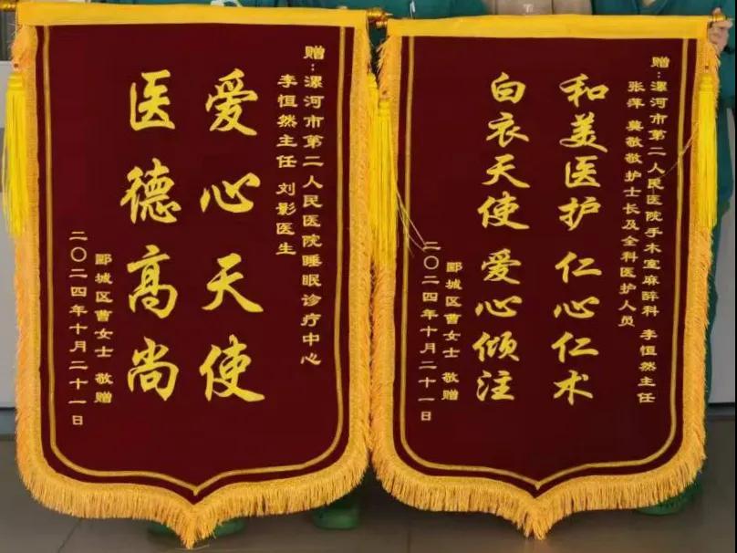 經(jīng)過醫(yī)護(hù)人員的精心治療和護(hù)理,曹女士術(shù)后迅速恢復(fù),狀態(tài)良好,長時間折磨身心的病痛一夜之間被解除,患者及家屬非常滿意和感動。出院時,曹女士及家屬特別制作了兩面錦旗來表達(dá)感激之情,她感慨地說:“如果不是及時來到市二院,我可能還要忍受更多的痛苦?,F(xiàn)在我終于可以睡個安穩(wěn)覺了。