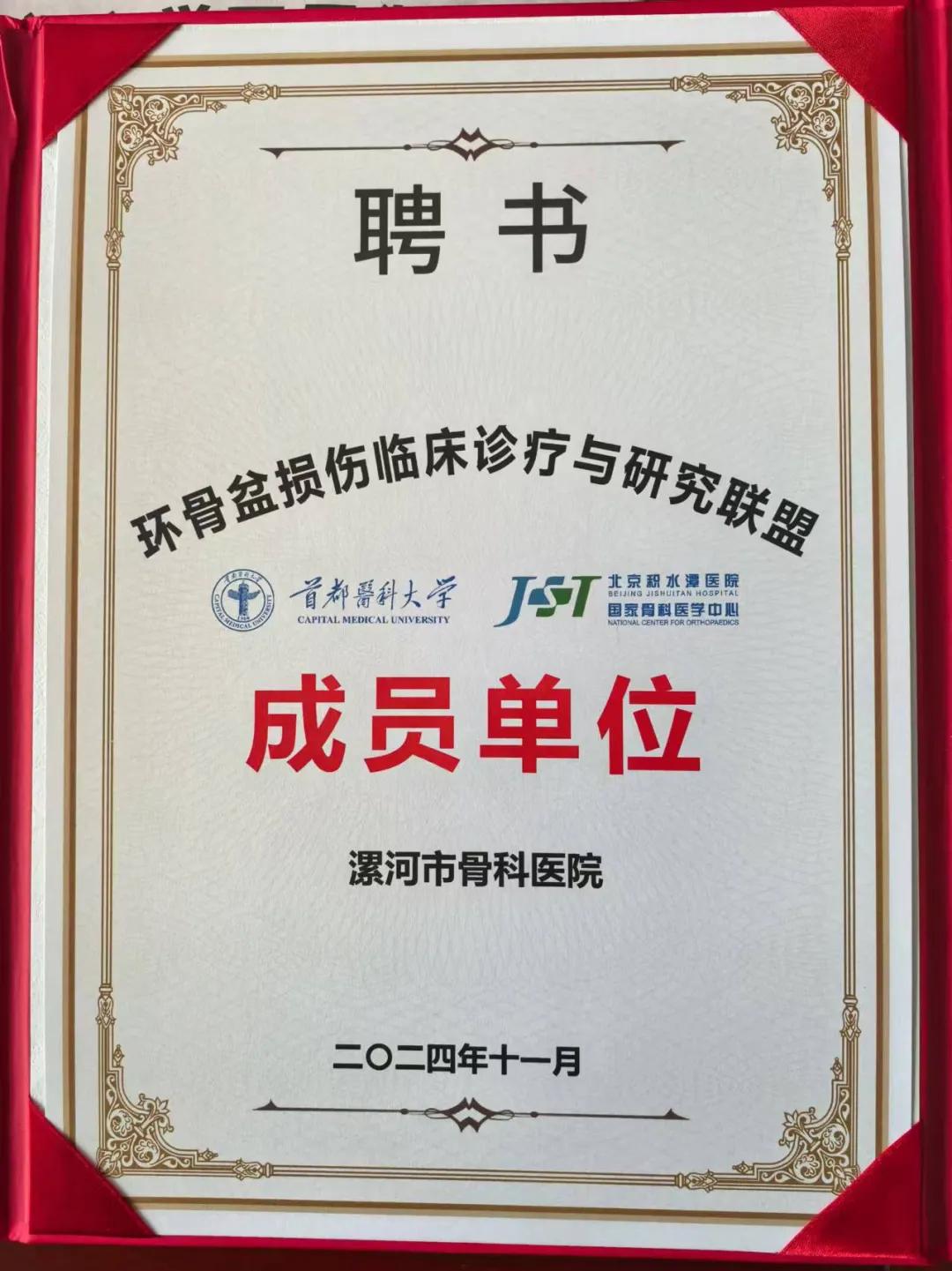 此次受邀加入該聯(lián)盟,為我院環(huán)骨盆損傷治療的進(jìn)一步發(fā)展提供了重要契機(jī),也標(biāo)志著我院在骨盆微創(chuàng)救治領(lǐng)域邁上新臺階。未來,漯河市骨科醫(yī)院將充分發(fā)揮聯(lián)盟成員優(yōu)勢,與聯(lián)盟各單位實現(xiàn)資源共享、優(yōu)勢互補、協(xié)同發(fā)展,并以此推動本院以及漯河市及周邊地區(qū)環(huán)骨盆損傷臨床診療領(lǐng)域的高質(zhì)量發(fā)展,造福更多的患者。(盧 闖 劉 旭 袁錦鈺)