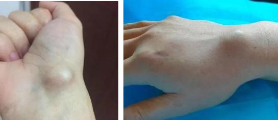 腱鞘囊腫的病因是長(zhǎng)期炎癥刺激、慢性勞損導(dǎo)致關(guān)節(jié)囊、韌帶、腱鞘中的結(jié)締組織發(fā)生退行性粘液性變性,從而形成囊性腫物?;颊叨酁榍鄩涯?,女性更多見。腱鞘囊腫常呈半球形,隆起于皮下,生長(zhǎng)緩慢,大小不一,一般不超過2cm,偶爾也可達(dá)8cm。囊腫大小與癥狀輕重?zé)o直接關(guān)系,而與囊腫張力有關(guān),張力越大,腫物越硬,疼痛越明顯。