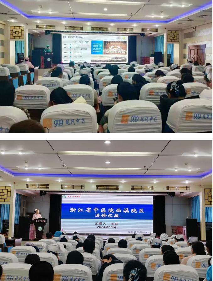 接著,急診科護士長段銳、兒童康復科護士長王莉10月份作為護士長進修的第三組赴浙江省中醫(yī)院進修學習。兩位從管理亮點、護理技術、文化建設、服務流程等方面進行了詳細匯報,并結合各自的專業(yè)特點和學習內容,從自身實踐、學習收獲、未來發(fā)展等方面分享了學習成果。分享中的新知識、新技術和先進的理念,讓大家耳目一新,紛紛表示拓寬了工作思路,獲益匪淺。