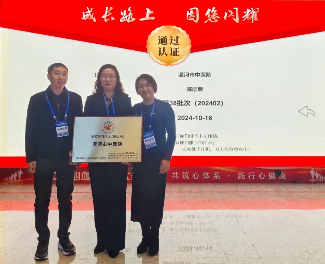 喜報頻傳,國家認證!——漯河市中醫(yī)院榮獲國家胸痛中心認證授牌