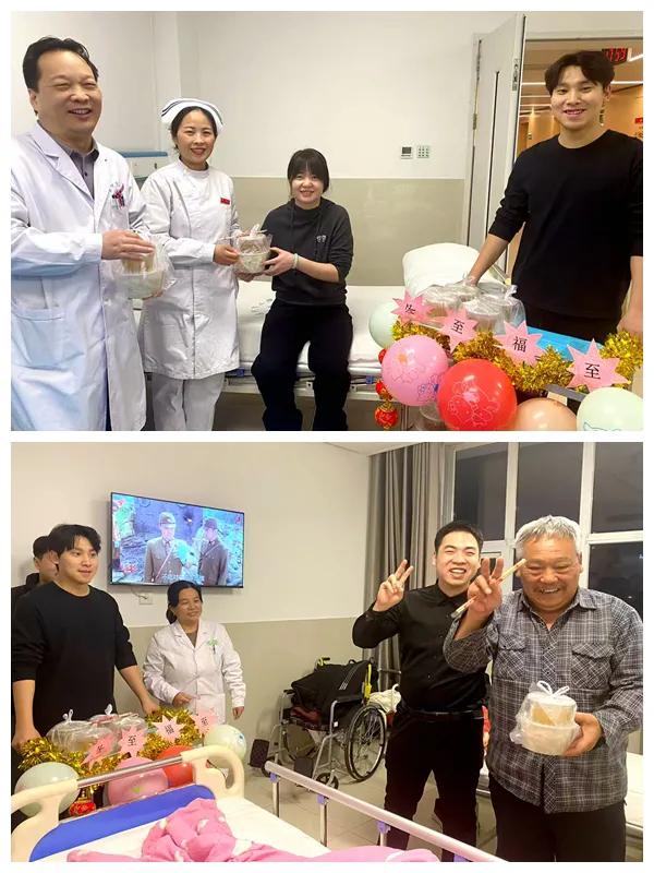 “祝大家早日康復(fù),冬至快樂!”“謝謝醫(yī)護人員,謝謝你們對我們的關(guān)心和問候。”病區(qū)里到處都能聽到醫(yī)護人員的問候和患者連連稱贊的道謝聲,到處洋溢著溫馨、祥和的氛圍。