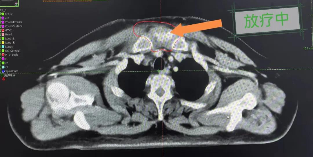 隨后,趙亮主任帶領(lǐng)放療團(tuán)隊(duì)以最快的速度完成了患者的放射治療計(jì)劃,在保證放療精準(zhǔn)打擊腫瘤的同時(shí),利用先進(jìn)的三維立體精確放療技術(shù),最大限度的避免心臟、肺部的損傷發(fā)生,整體治療精準(zhǔn)度達(dá)到1mm以內(nèi)。經(jīng)過10次的放射治療后,患者疼痛已明顯減輕,胸部腫物肉眼可見的縮小,患者及家屬臉上終于露出久違的笑臉。