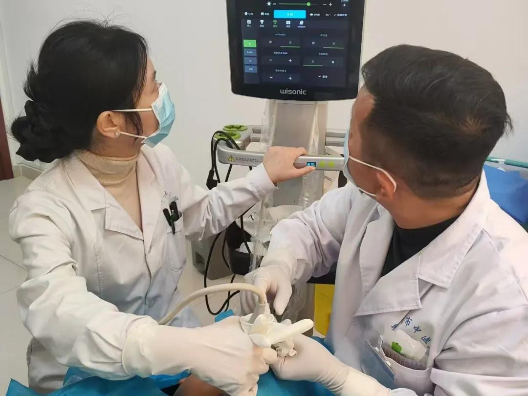 患者張某1年前無明顯誘因出現(xiàn)右側(cè)顳頜處疼痛并伴有麻木、抽搐等癥狀,在當(dāng)?shù)卦\所行針灸、中藥貼敷、口服藥物治療效果不佳?;颊咄纯喈惓#共荒苊?。針灸科副主任潘建濤及其團隊在彩超引導(dǎo)下行面神經(jīng)脈沖射頻調(diào)控術(shù)后,患者便感覺疼痛明顯較前減輕,當(dāng)天晚上睡眠質(zhì)量得到改善。