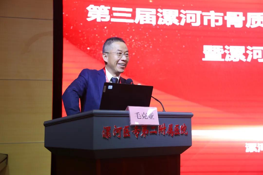 中國人民解放軍總醫(yī)院毛克亞教授首先對漯河市骨科醫(yī)院的邀請表示感謝,并表示本次骨質(zhì)疏松和骨礦鹽疾病分會學(xué)術(shù)年會為業(yè)內(nèi)同仁搭建了一個互相學(xué)習(xí)、交流互鑒的良好平臺,為豫中南地區(qū)的骨質(zhì)疏松、骨礦鹽疾病與骨科康復(fù)的發(fā)展做出了巨大的貢獻(xiàn)。他表示會盡己所能,與各位同仁分享專業(yè)前沿動態(tài),增強學(xué)術(shù)交流,也預(yù)祝本次大會取得圓滿成功。