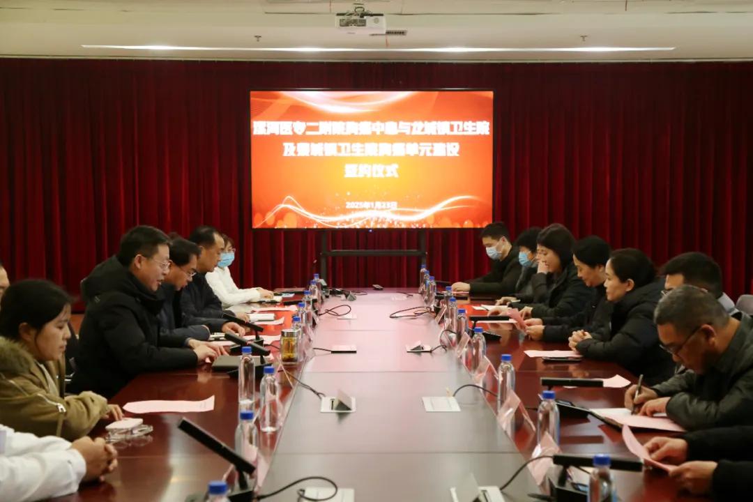 隨后,在與會人員的共同見證下,漯河醫(yī)專二附院院長王齊超分別與龍城鎮(zhèn)衛(wèi)生院院長葛雙云、裴城鎮(zhèn)衛(wèi)生院院長王群峰正式簽署了合作協(xié)議。